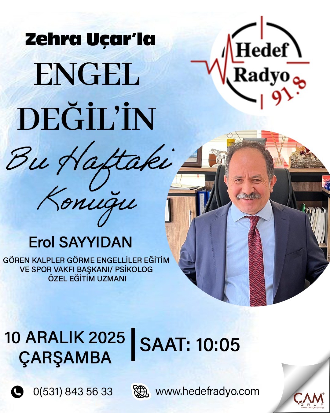 Gören Kalpler Görme Engelliler Eğitim ve Spor Vakfı Başkanı, Psikolog ve Özel Eğitim Uzmanı Erol Sayyıdan ağırlanıyor.